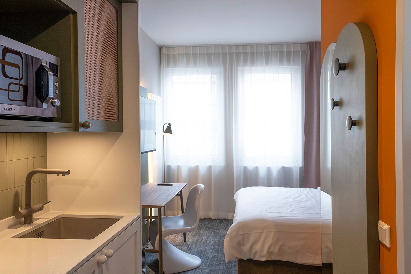 Mitten im lebendigen Stadtteil St. Georg erwarten dich 58 voll ausgestattete Apartments, die modernes Wohnen neu denken. Ob du nur kurz bleibst oder länger planst. Hier findest du dein Zuhause auf Zeit: mit smarter Küchenzeile, stilvoller Einrichtung und cleveren Services, die dir den Alltag leicht machen.